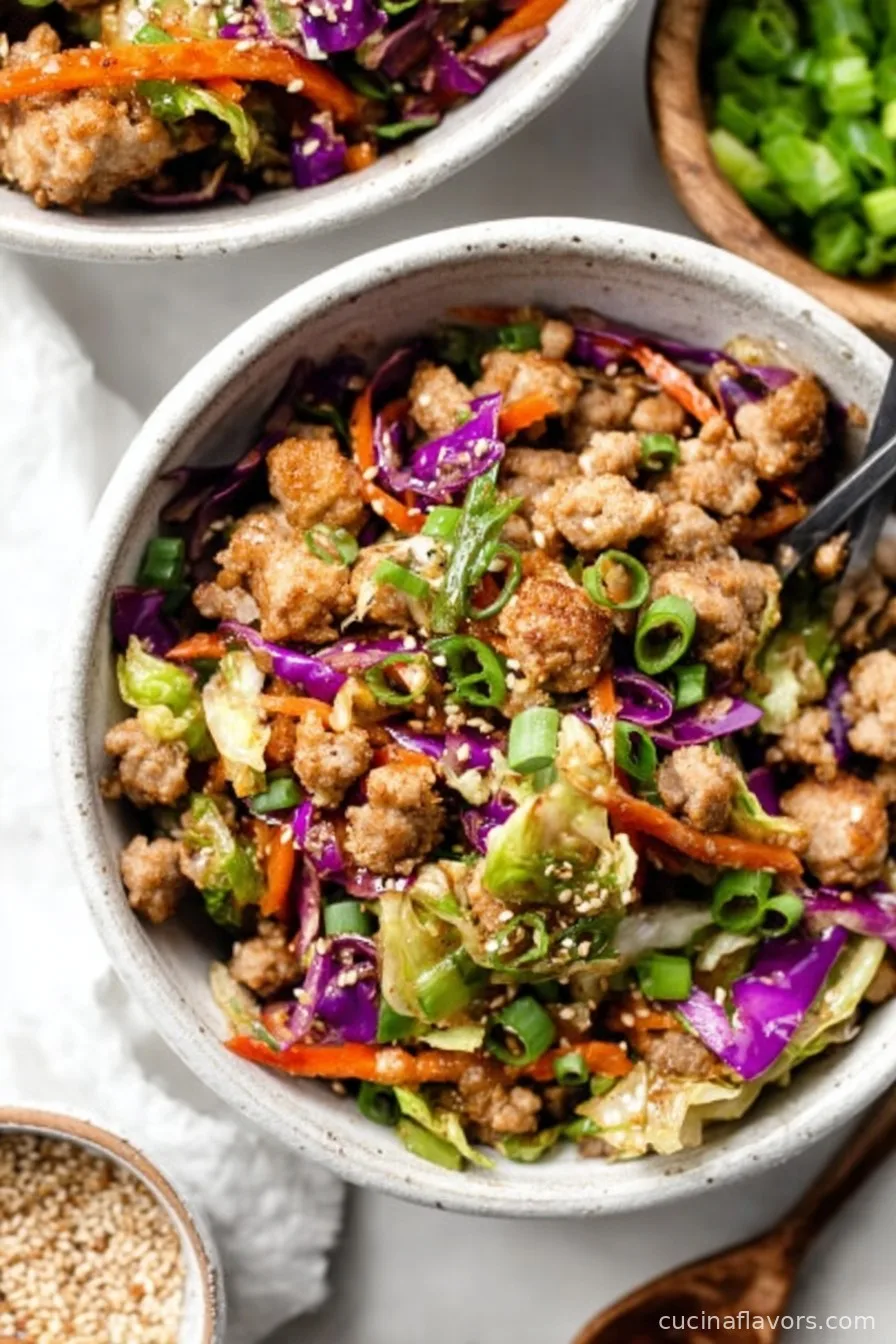 To further customize your Egg Roll in A Bowl with Ground Turkey, consider tossing in red bell peppers, snap peas, or mushrooms for added color and nutrients. For a lower-sodium version, use coconut aminos in place of soy sauce.